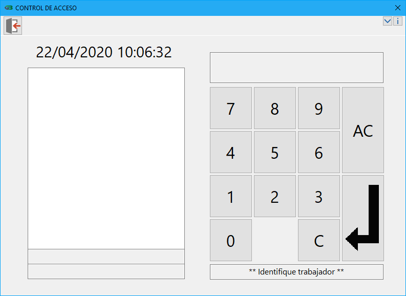 Desde esta opción el trabajador realiza su marcaje de entrada. Dispone de un teclado numérico en el cual se identificará el trabajador.
