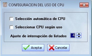 2.Configuración del uso del CPU la cual permite configurar el uso de diferentes procesadores al ejecutar cada una de las aplicaciones de GpBusiness. Esta opción sólo estará accesible para el usuario número 1.